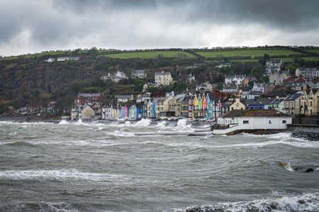Winter storm hitting the seaside town of Whitehead in Northern Ireland