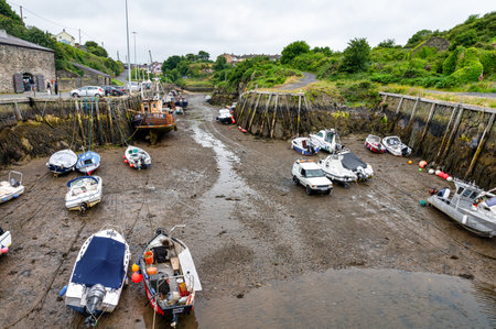 Amlwch, UK- July 8, 2022: Fishing boats moored at Amlch port in North Wales at low tide