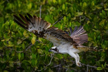 Flying osprey Pandion haliaetus with an eaten fish in its claws in Naples, Florida