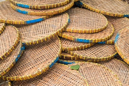 Imitate tray plate made from bamboo rattan for sun dried fish or fruits. Used in Asia with a traditional work to make dry food.