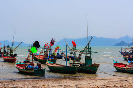 Traditional Thai ishing boats at the beach in Pak Nam Pram, Thailand