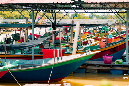 Terengganu, Malaysia - June 26, 2022 Fisherman boats at the river near Pantai Batu Buruk.