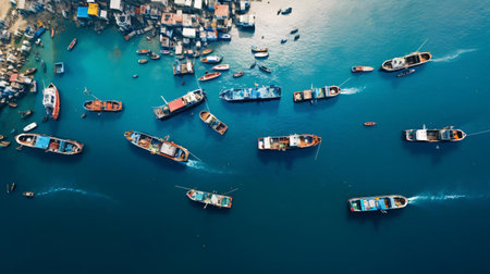 Captivating Capture: Aerial Photography Unveiling Boats Sailing the Vast Ocean - AR 3:2