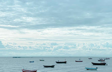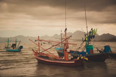 Chonburi Thailand - January 23, 2018; Beautiful sunrise, Thai Fishing boat is out fishing. Fishermen is a career that has been popular in the seaside city of Thailand.