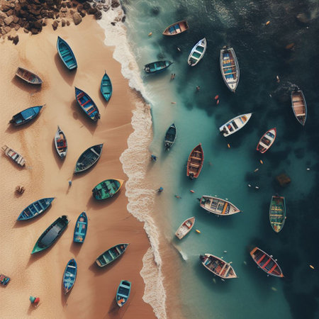 Banca boats seen from above. Image generated with Generative AI