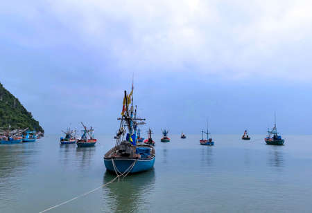 Fishing boats in the sea bay in Prachuap Khiri Khan district, Thailand