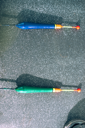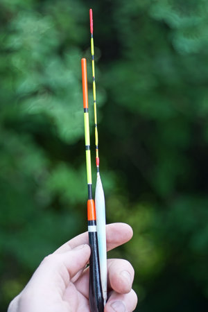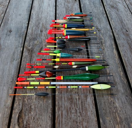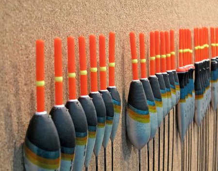 Group of floats for fisherman. Accessories for fish catching. Leisure and hobby equipment.