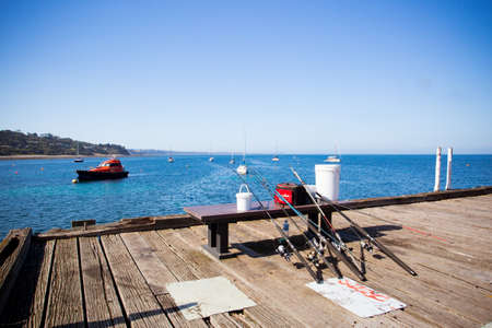 sea fishing from the pier fishing rod in hand