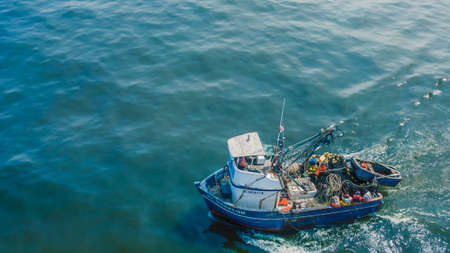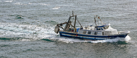 Fishing in the North Sea. Fishing boat with fishermen on the high seas.