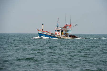 a fishingboat on the Gulf of Thailand on the Ban Laem District near the city of Phetchaburi or Phetburi in the province of Phetchaburi in Thailand. Thailand, Phetburi, November, 2019