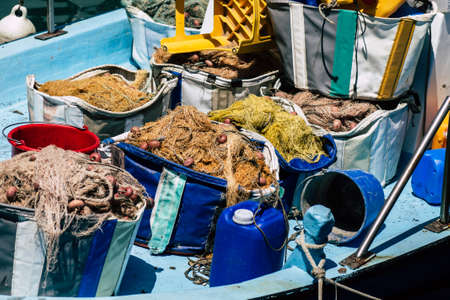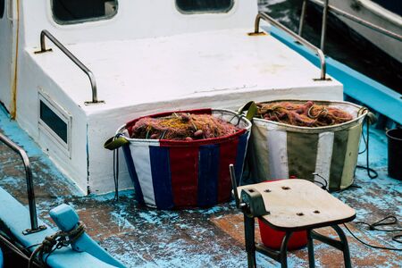 Limassol Cyprus May 30, 2020 Closeup of a fishing boat moored in the old port of Limassol in Cyprus island