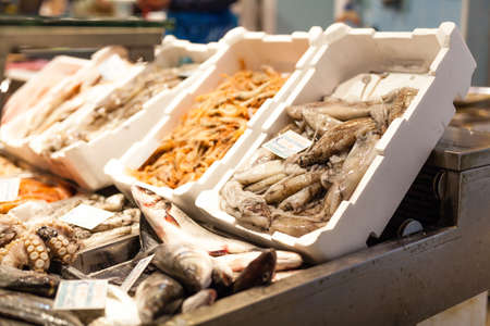 Fresh Seafood for Sale at a Market Stall. High quality photo
