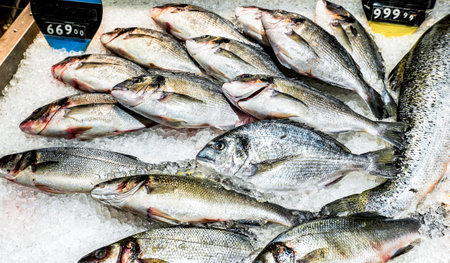 Atlantic fish displayed on a market or store counter, fresh and ready for sale.