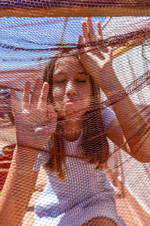 Frayed cargo nets create a unique texture with intricate patterns and layers