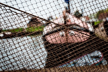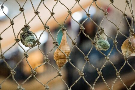 Fishing net close-up. Fishing equipment. Grid Industrial fishing.