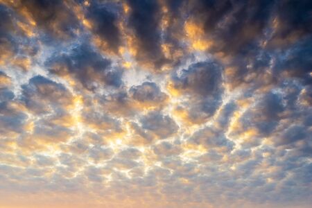 the sky full with altocumulus clouds and golden sunlight abstact nature background