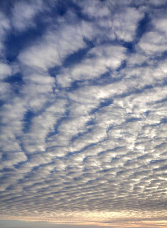 Dark blue sunset sky with Stratocumulus clouds. Natural sky composition. Element of design. Sky replacement for composites
