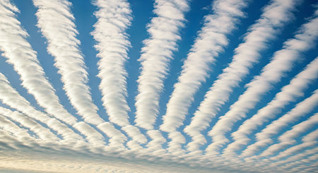 Skyward Perspective Orderly Rows of Cumulus Clouds Stretching Across a Vibrant Blue Expanse