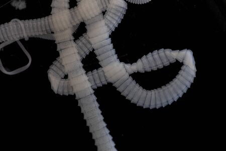 Microscopic view collection of adult free-living female Strongyloides stercoralis, a human pathogenic parasitic roundworm causing the disease strongyloidiasis.