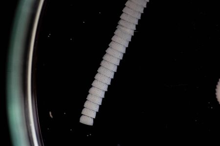 Larva of the Aedes Aegyptis mosquito on a slide in the biology laboratory of the Federal University of São Carlos, UFSCAR, Sao Paulo, Brazil
