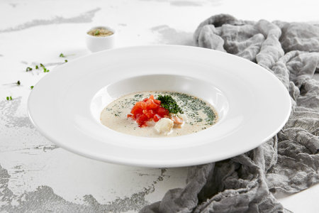 Fish soup served on the table in plate