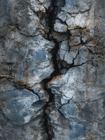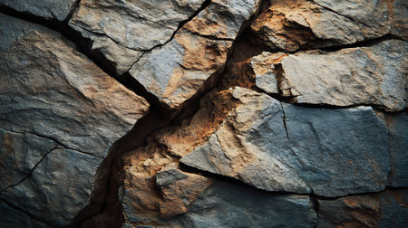 This image showcases a detailed close-up of a cracked rock surface, emphasizing the geological features and textures inherent in natural environments. The lighting enhances depth.