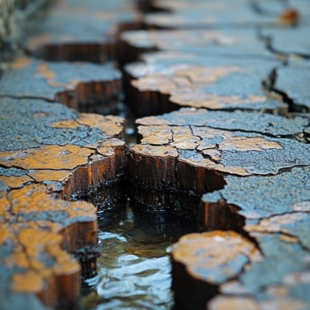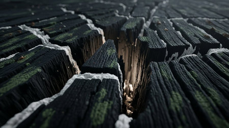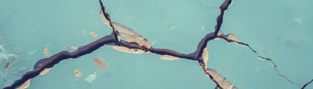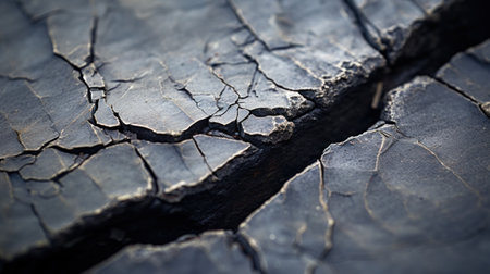 A close up of a cracked piece of concrete with some cracks in it, AI