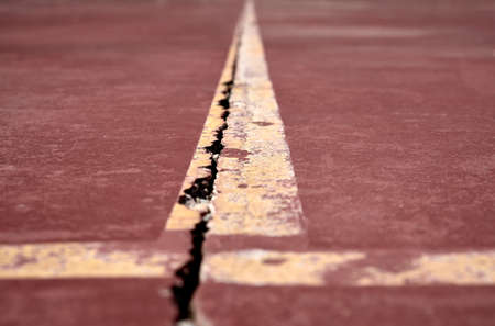 Asphalt road cracked and broken from earthquake, Louangphabang, Laos. Close-up