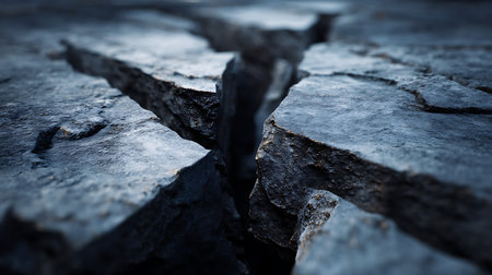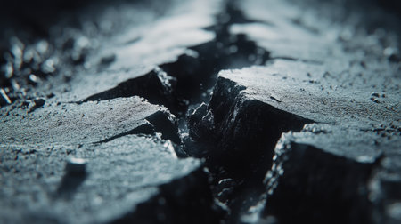 A striking image showcasing a cracked surface, revealing a deep crevice with a dark interior. The lighting adds depth and intrigue to the scene.