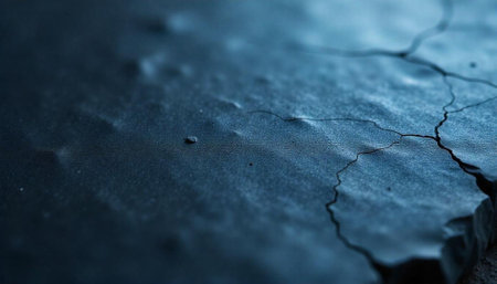 A stunning close-up of a cracked surface reveals vibrant blue water flowing through the fissure. The contrast of textures showcases the beauty of nature's design.