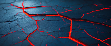 AI Generated. Dark blue stone texture with bright red illuminated cracks