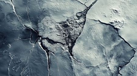 A captivating aerial view of an abstract frozen landscape featuring intricate cracks in the ice. This image highlights the stunning textures and patterns formed by nature during the cold season.