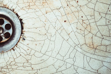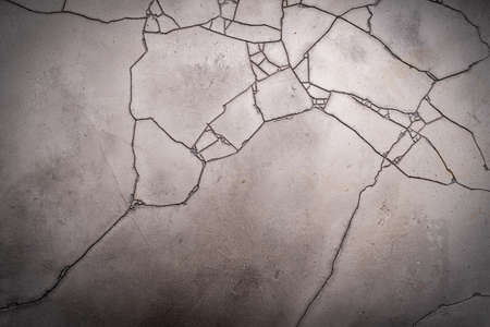 concrete floor or cement road on old parking lot damaged and cracked from ground subsidence.