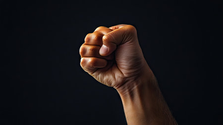 This striking close-up image showcases a clenched fist against a dark backdrop, embodying themes of strength, resilience, and determination in human expression.