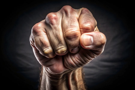 Clenched fist on black background
