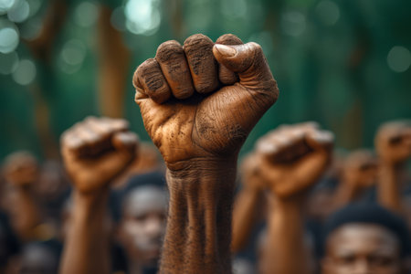 black fist in the air as a sign of power
