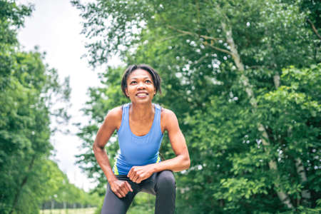 Beautiful young Black sportswoman catching her breath after running outdoors