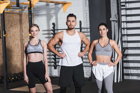 Portrait of smiling sporty woman looking at camera at crossfit gym