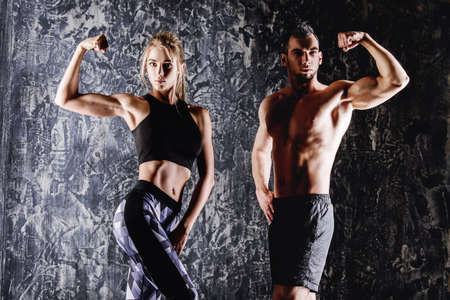 Portrait of muscular young people with beautiful athletic bodies. Fitness, bodybuilding. Health care.