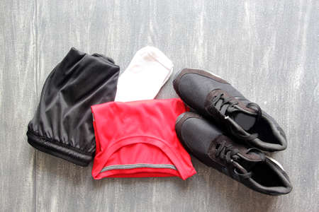 Set of sport wear for boxing exercise training, Gym fashion and accessories, Healthy lifestyle concept.