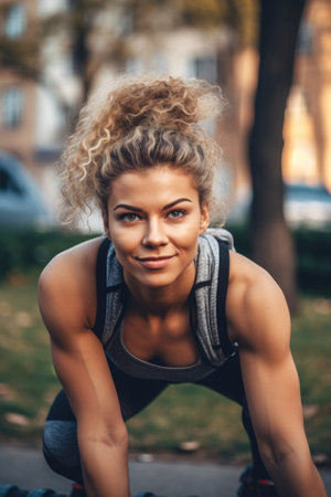 portrait of a sporty young woman exercising outside, created with generative ai