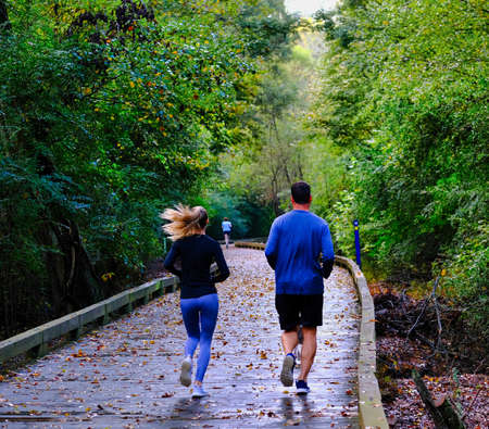 ALPHARETTA, GEORGIA -August 27, 2017: The Big Creek Greenway is over 20 miles of paved and board fitness trails spanning two counties north of Atlanta through lush green wetlands.
