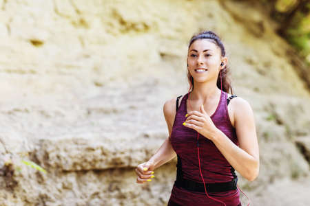 Young beautiful and sporty woman on the hiking trails