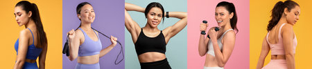 Fitness enthusiasts showcase healthy lifestyle choices in vibrant gym collage