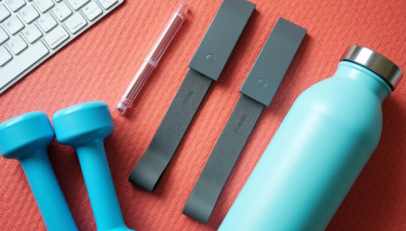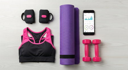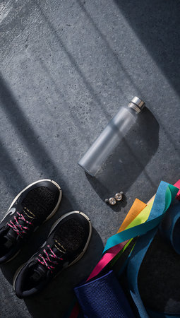 This dynamic composition showcases essential sporting gear, highlighting the importance of wellness in a minimalistic setting.