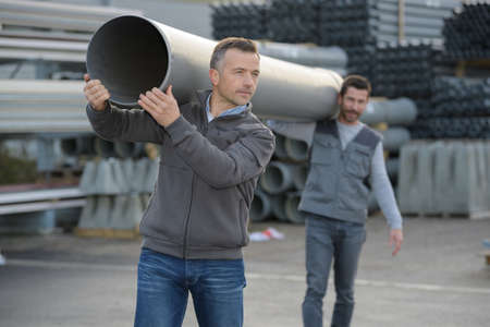 Two skillful factory engineer or worker showing teamwork and partnership . Industrial people and manufacturing labor concept .