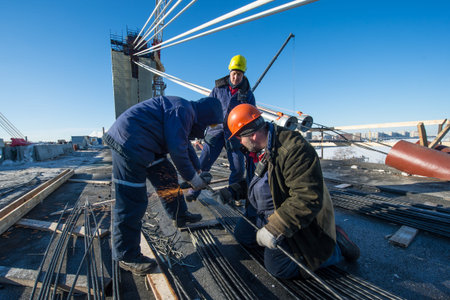 St. Petersburg, Russia - March 5, 2018: The cable-stayed bridge under construction. The final stage of engineering work.