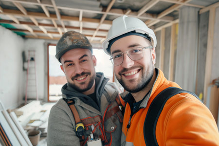 A hardworking construction professional beams with pride amidst ongoing projects showcasing dedication.