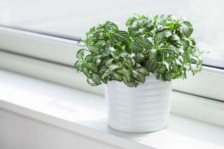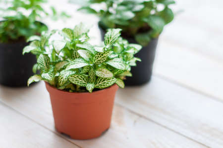 houseplant fittonia albivenis in white flowerpot