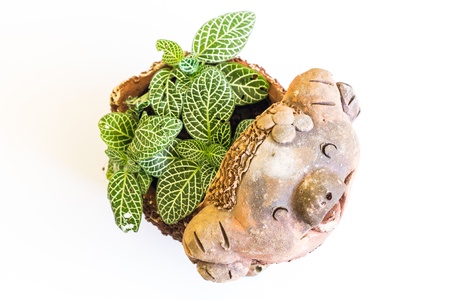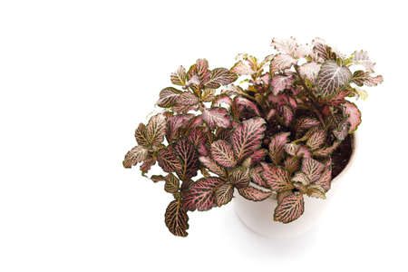 Fittonia albivenis in flowerpot on white background, overhead view
